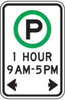 | 9時-17時まで1時間駐車可 | バスのみ通行可の車線 | この先ガソリンスタンドあり | 近くに病院あり |