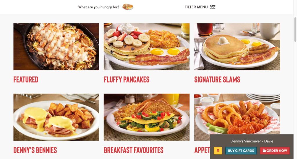 カナダの Denny’s のメニューは『Denny’s Food Online Menu | Denny’s Canada』から確認することができます。