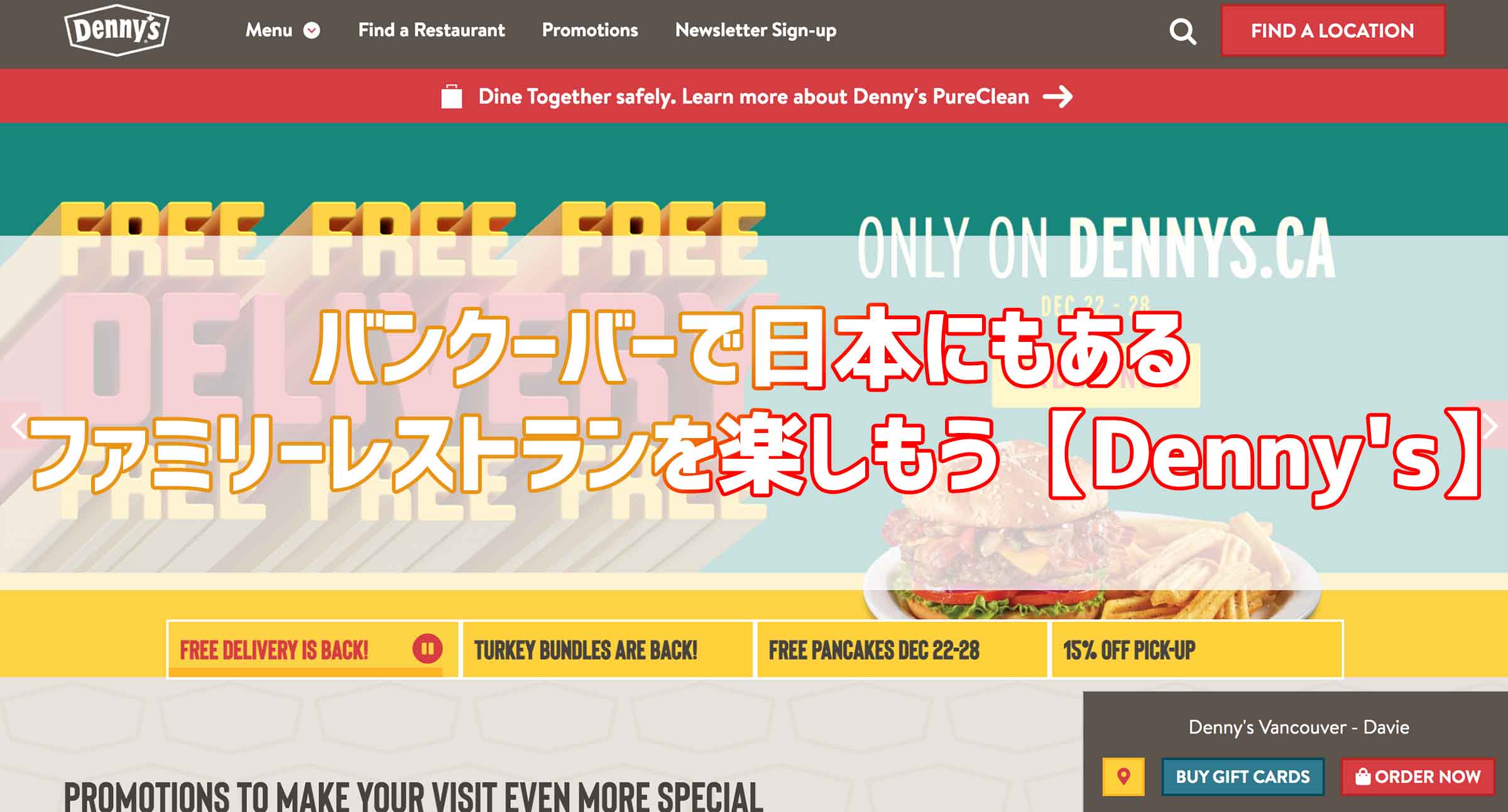 この記事では「バンクーバーで日本にもあるファミリーレストランを楽しもう【Denny’s】」について紹介をします。
