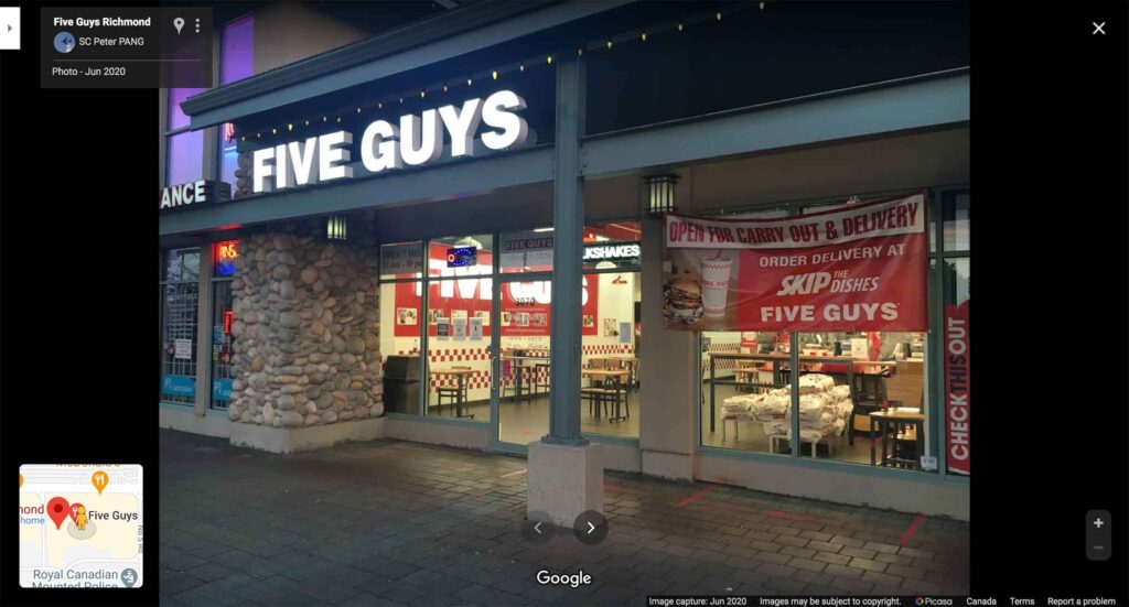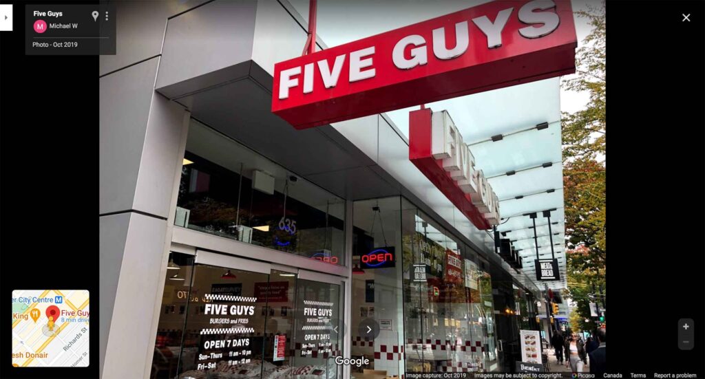 Five Guys はダウンタウン、ノースバンクーバー、コキットラム、リッチモンドなど様々な場所にあります。
