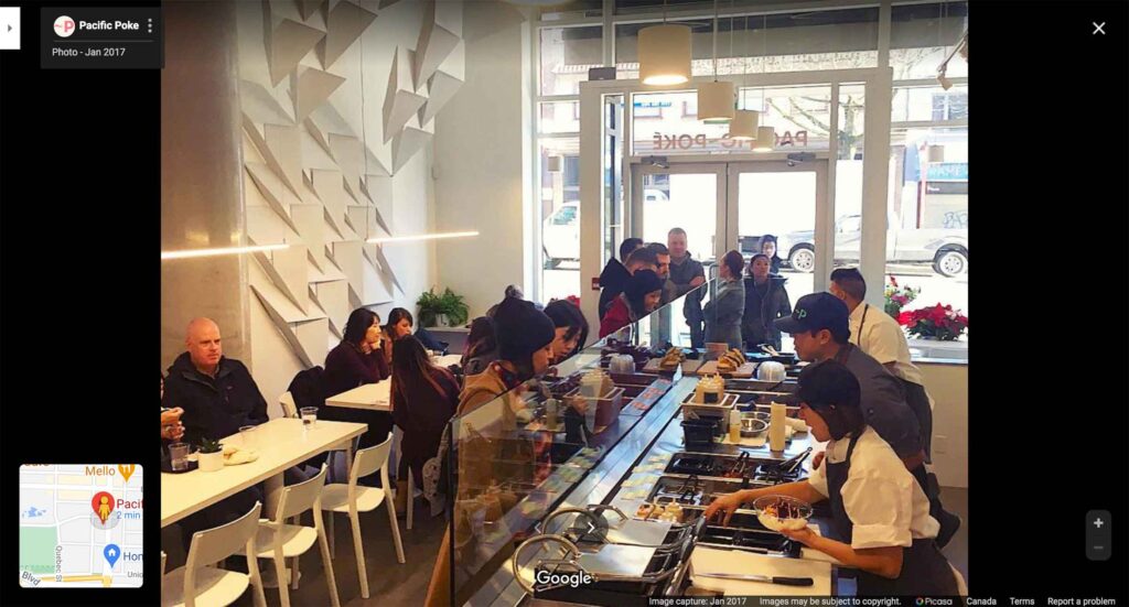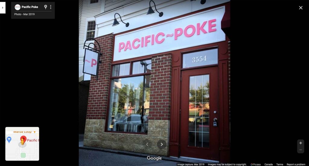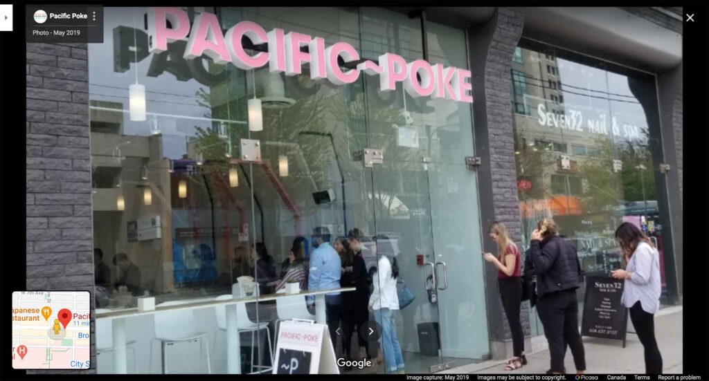 Pacific Poke はバンクーバーに5店舗、バーナビーに1店舗、ケロウナに1店舗、そしてカルガリーに1店舗の合計8店舗あります。