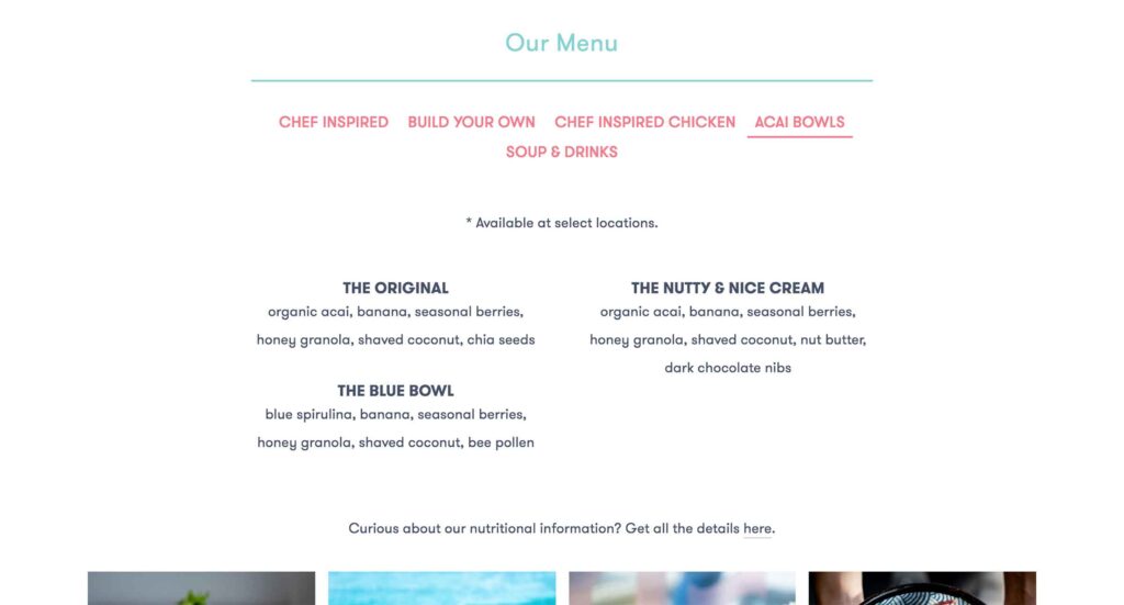 チキンやアサイなどのメニューもある