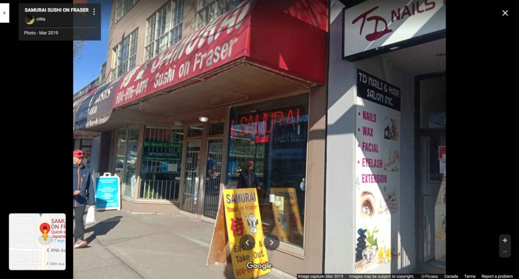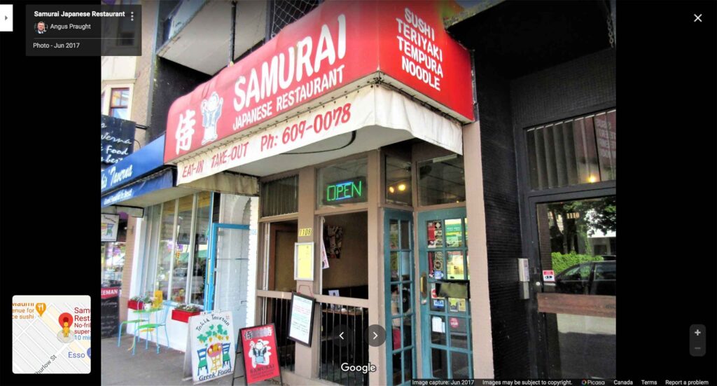 結論を先にお伝えすると、バンクーバーのイングリッシュベイ付近にある日本食レストランは【Samurai Sushi】ですね。