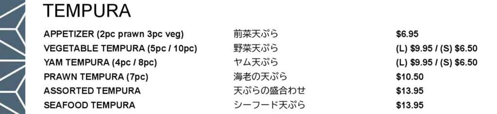 また「Samurai Sushi Take out Menu」からもメニューを見れます😌