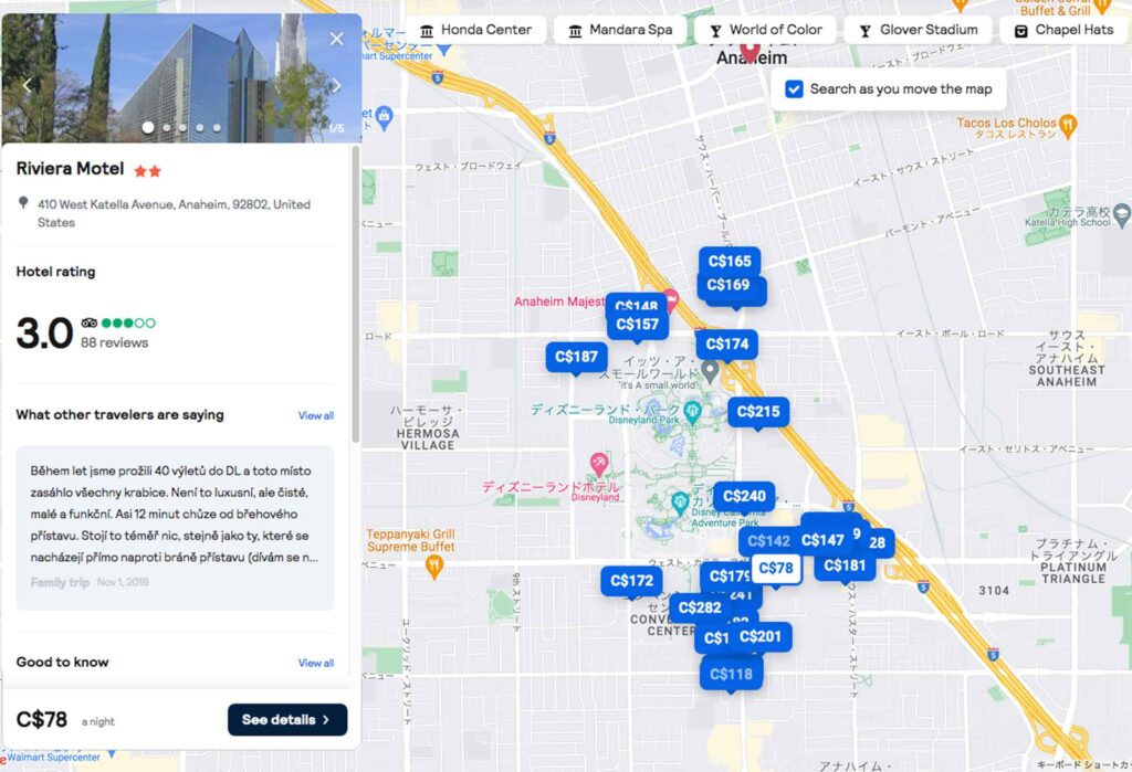 アナハイムの1泊の宿泊費用はピンキリで、$72から$1,029と幅広い料金です。