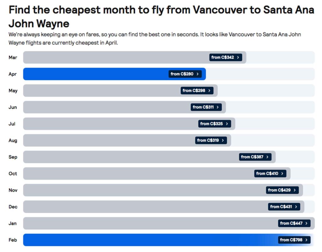- バンクーバー(YVR) – アナハイム(SNA)間往復平均料金:約$400