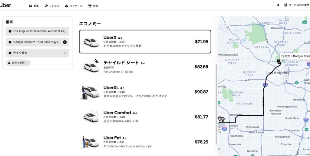 ドジャー・スタジアムの最寄空港 Los Angeles International (LAX) からドジャー・スタジアムはタクシーやUber または公共交通機関があります。