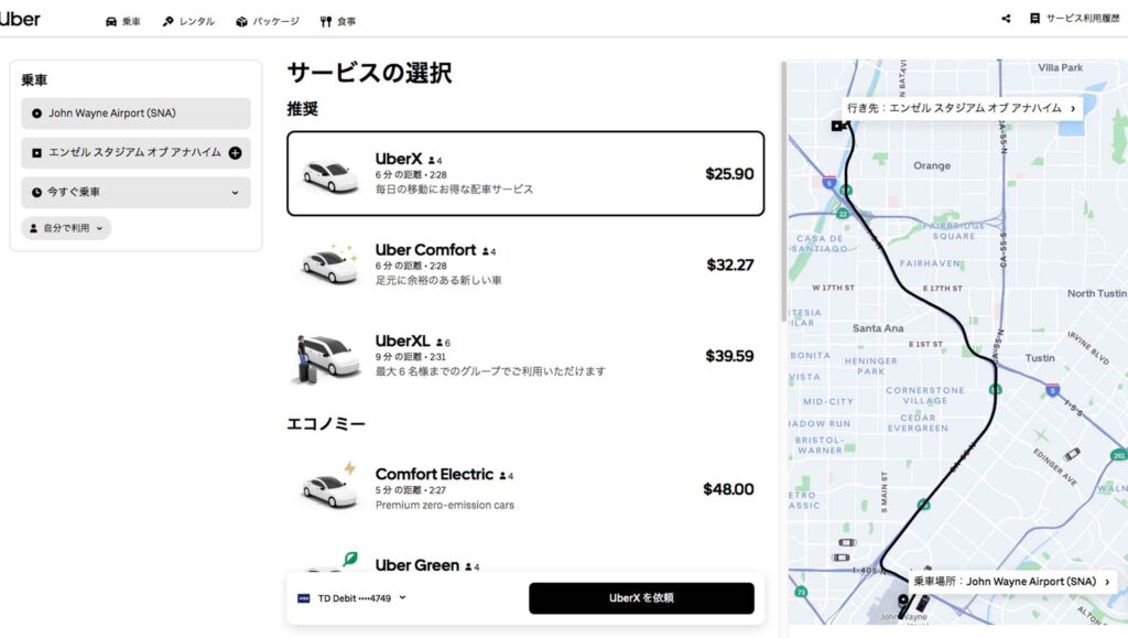 エンゼル・スタジアムの最寄空港 John Wayne Airport (SNA) からエンゼル・スタジアムはタクシーやUber または公共交通機関があります。