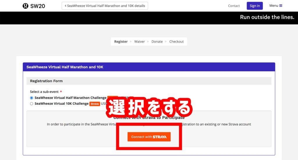 2.あなたが参加したいマラソンを選択して【STRAVA】へ登録をします。