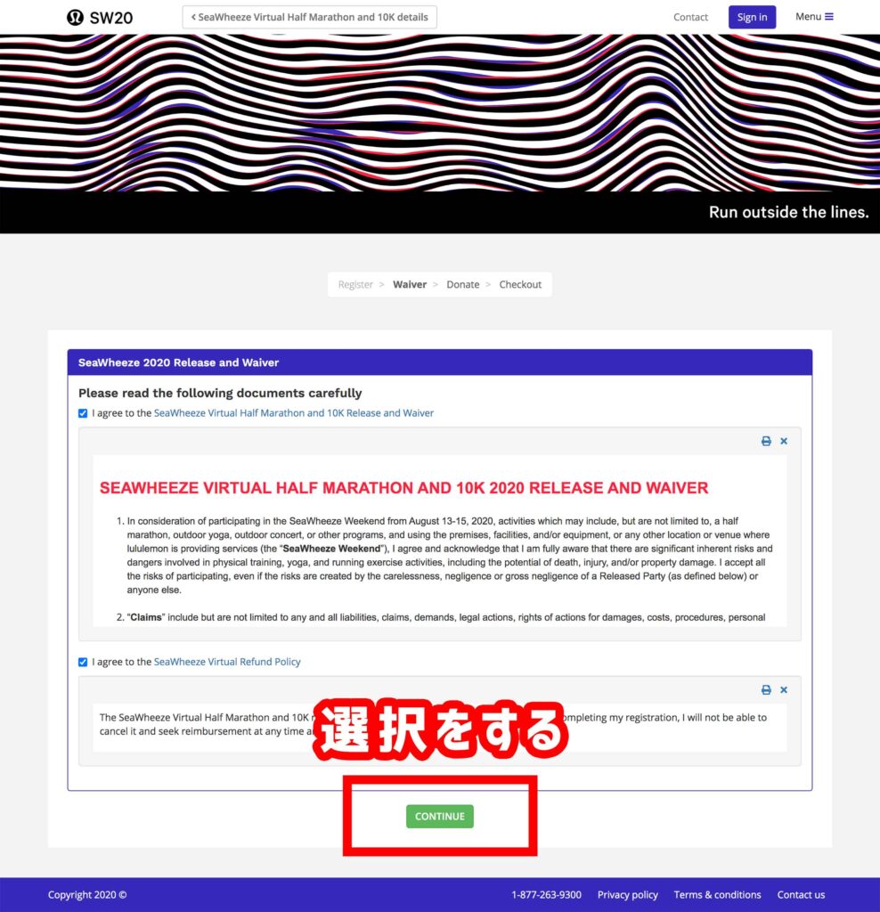4.規約のページに遷移します。返金は不可などが記載されているので内容を確認しましたら、【Continue】を選択します。