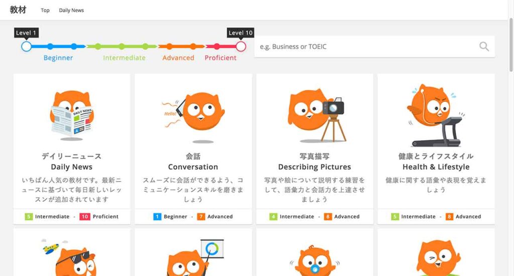 ビジネスやトラベルに関する教材から、初心者用の英語から上級者まで、あなたのレベルに合った教材が利用可能‼️