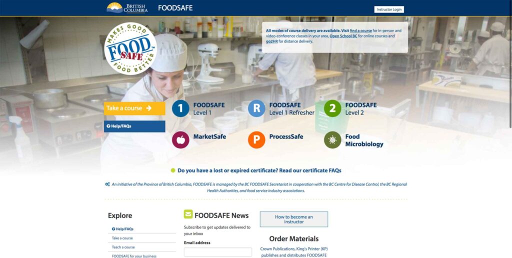 Foodsafe の資格を取得するには、Foodsafe の公式サイトで授業の予約が必要です。