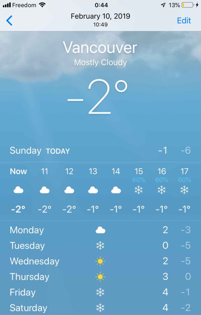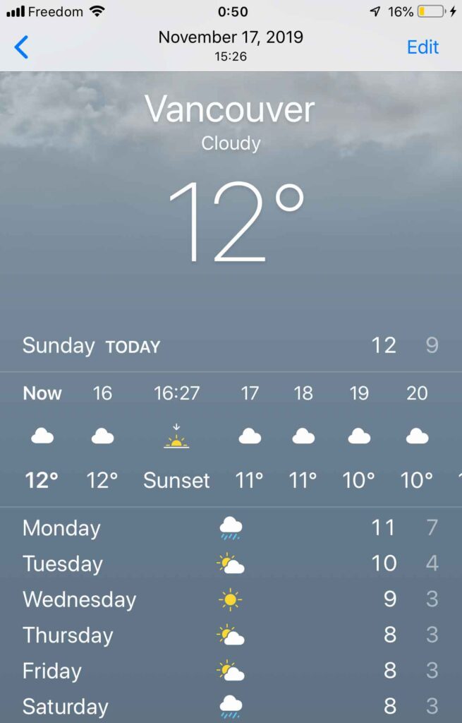 バンクーバーの冬はほぼ毎日雨です。11月ぐらいから3月ぐらいまでは晴れるときもありますが、ほぼ毎日雨ですね。