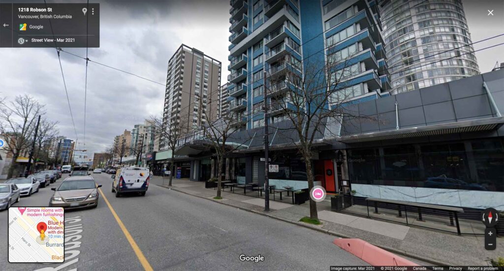 バンクーバーのダウンタウンにあるホテルのBlue Horizonの目の前がバス乗り場となります🏨