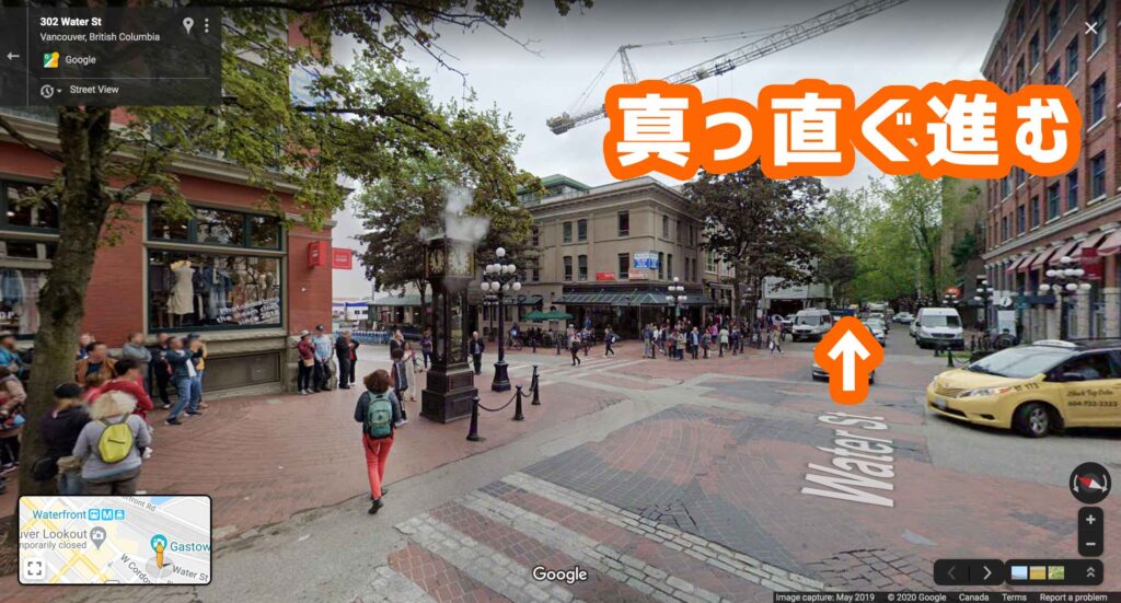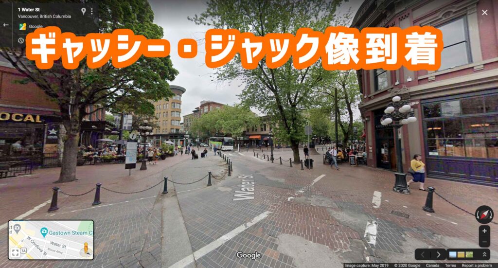 ギャスタウンの場所はダウンタウンにある「ウォーターフロント駅(Waterfront Station)」から徒歩5分ほどの場所にあります🚶