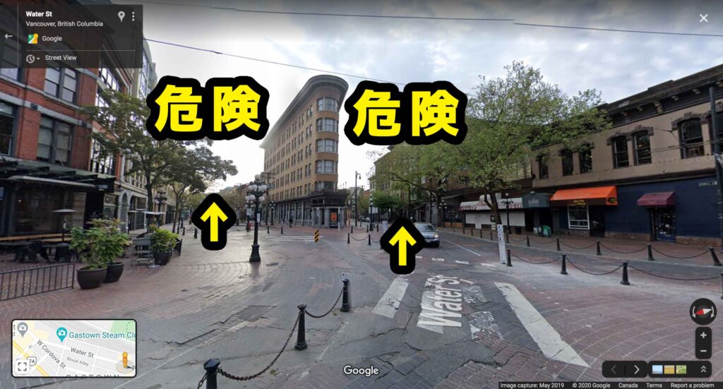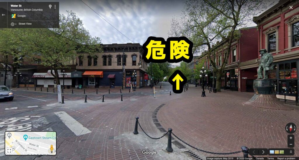 ギャスタウンは観光名所として多くの観光客が訪れますが、一歩道をずれるとホームレスや危ない人がいる危険地帯の「Hasting St」に入ってしまいます⚠️