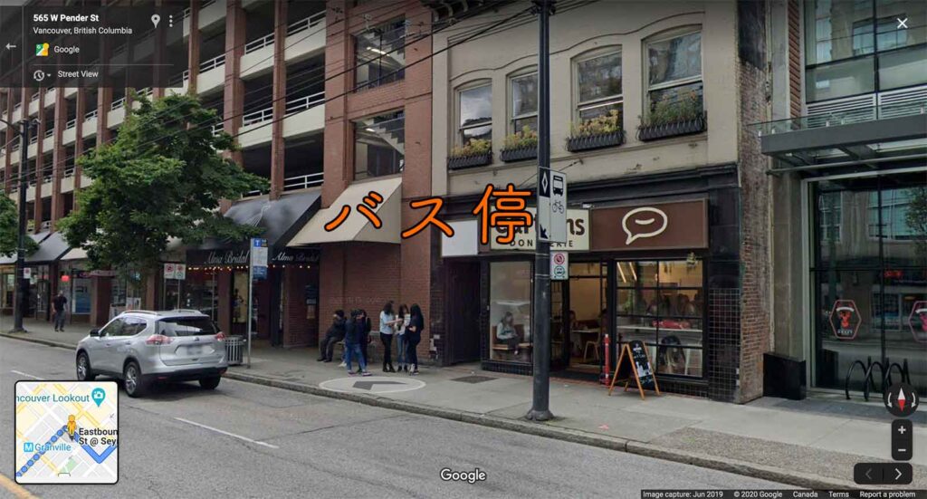 1.「シーモア通り(Seymour St)」と「ウェストペンダー通り(W Pender St)」にあるバス停で【211】番のSeymour行きのバスに乗ります🚌