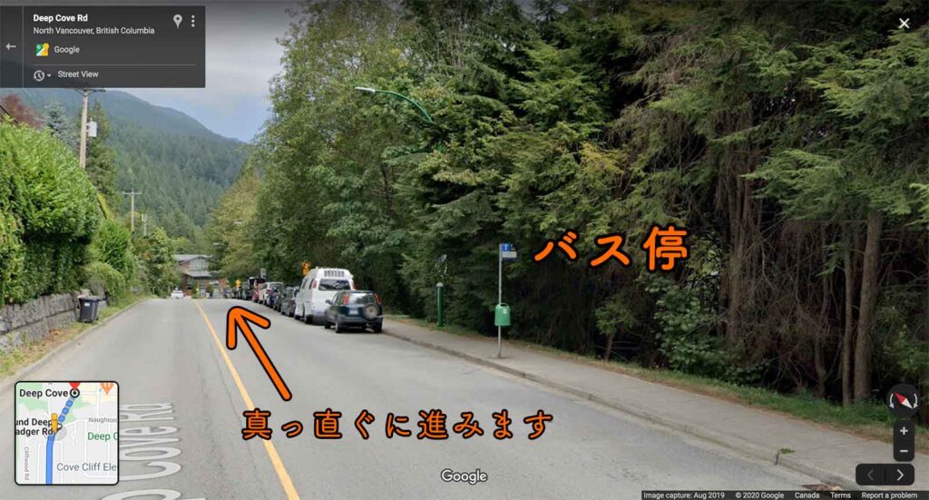 2.約45分ほど乗車して、「Northbound Deep Cove Rd @ Badger Rd」で下車をして、赤い矢印の方向のように真っ直ぐに進みます😌
