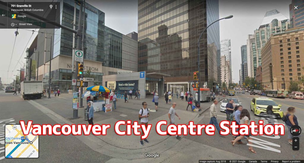 バンクーバーのダウンタウンにある「Vancouver City Center Station」から「YVR-Airport」または「Richmond-Brighouse」行きの電車に乗ります。