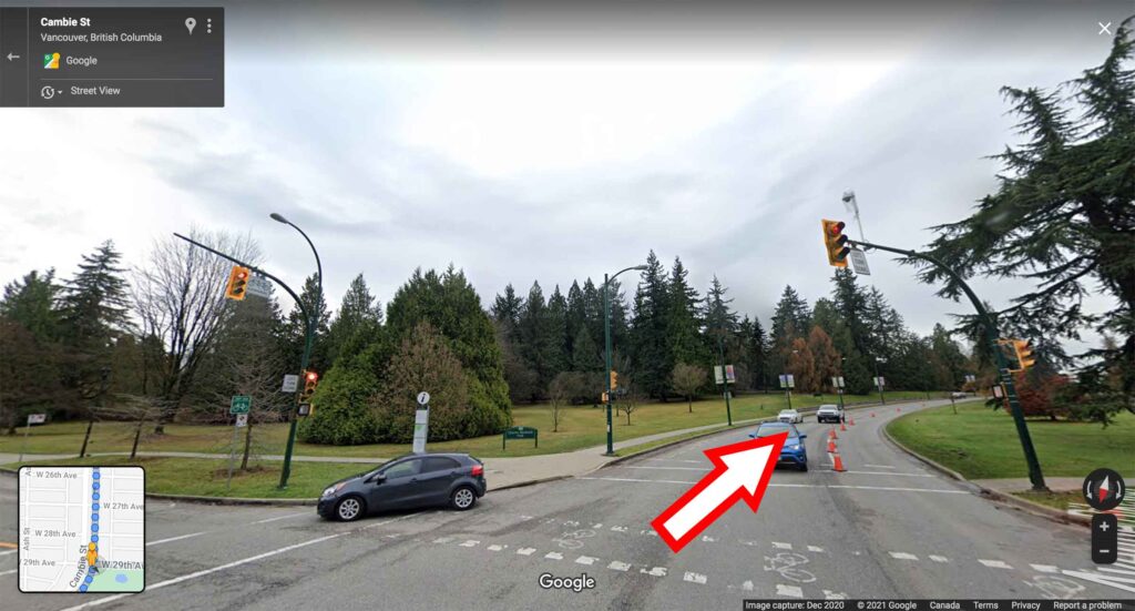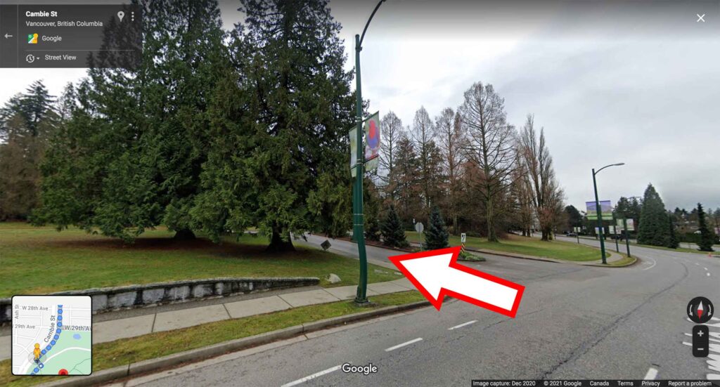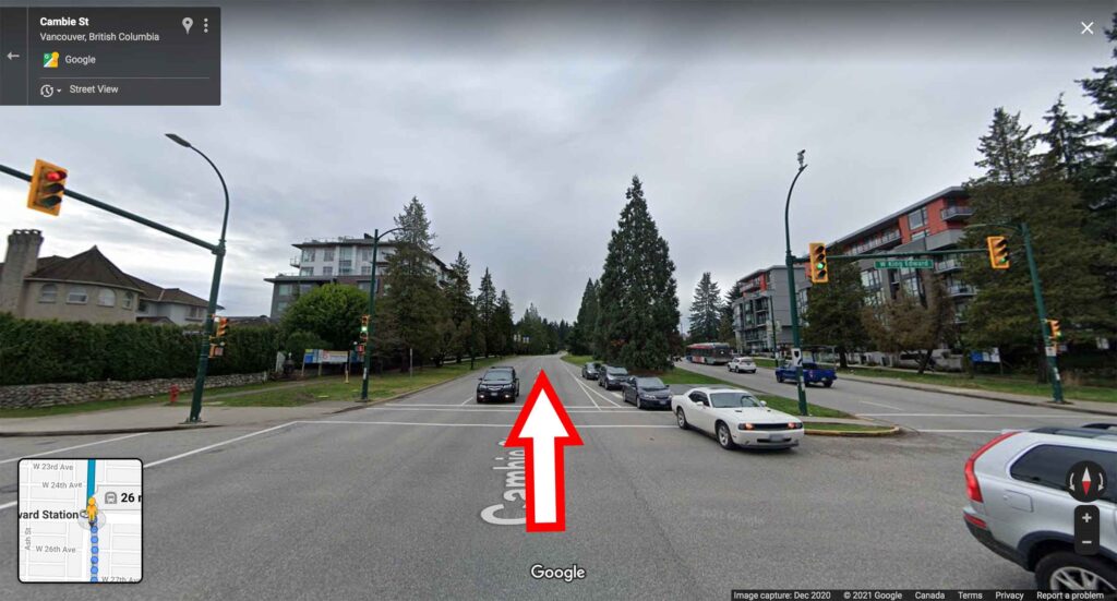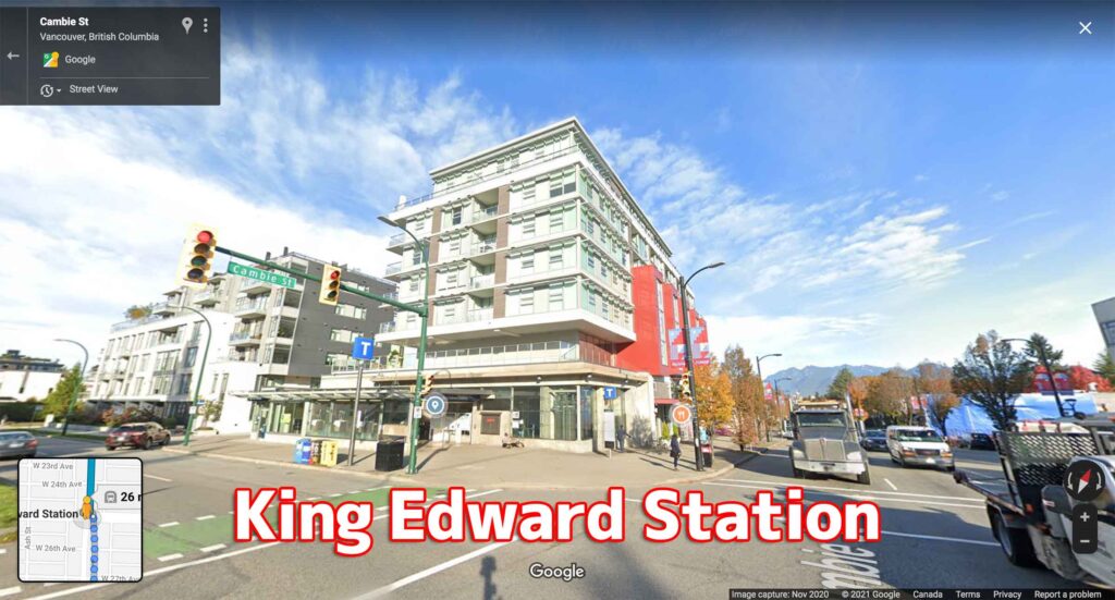 「W King Edward Ave W」と「Cambie St」の道を歩きます。