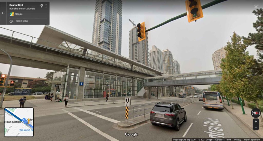 「Expo Line」の「King George」または「Production Way-University」行きの電車へ乗り、「Metrotown Station」まで向かいます。